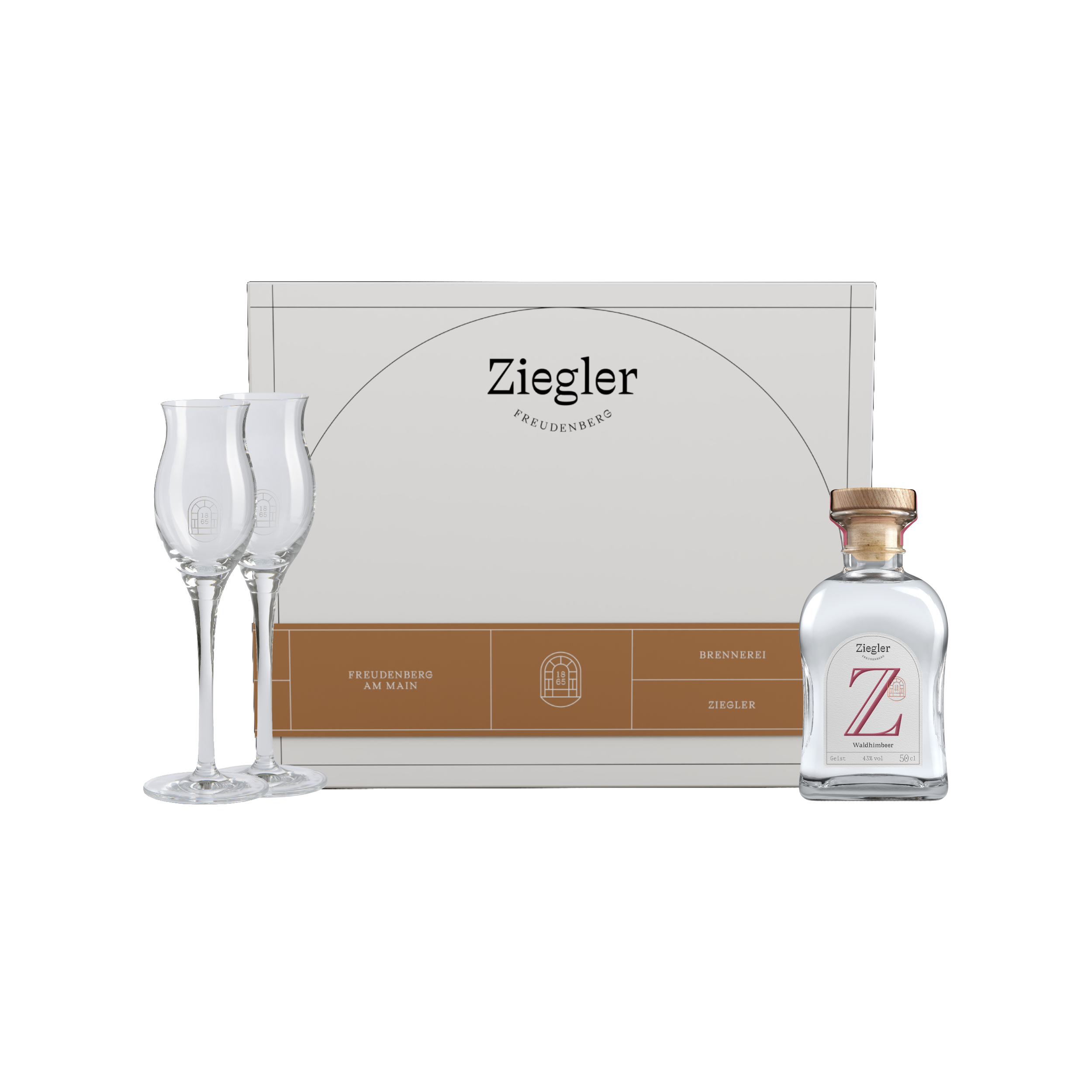 Experience distillation artistry at its finest: The wild raspberry spirit It is presented in stylish, exclusive Ziegler gift packaging. Two elegant tulip-shaped digestif glasses enhance the aromas of the fine spirit and ensure a perfect moment of enjoyment.